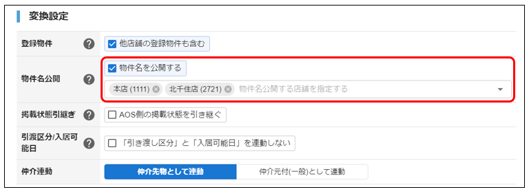 - 変換設定 :「他店舗の物件を含む」にチェックを入れてください。他は必要に応じて設定してください。