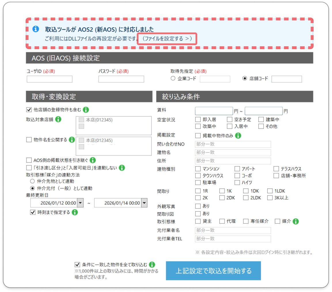 「AOS2」からの物件情報取込方法についてご説明します。