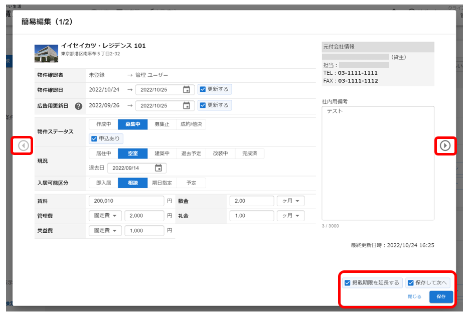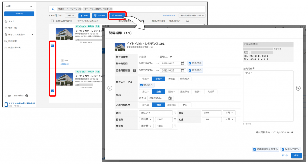 簡易編集機能は、募集物件の情報更新や物件確認の時間を短縮することを目的とした機能です。