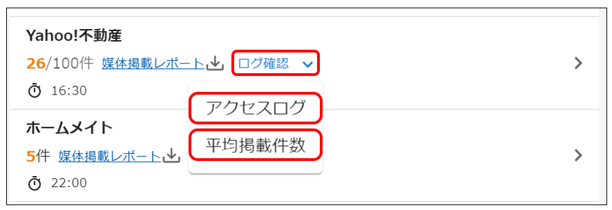 確認箇所:ホーム>掲載状況>Yahoo!不動産の「ログ確認」