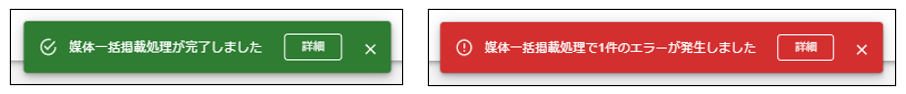 ①一括掲載の実行ボタンをクリックした後、画面上部に処理進行中のメッセージが表示され、