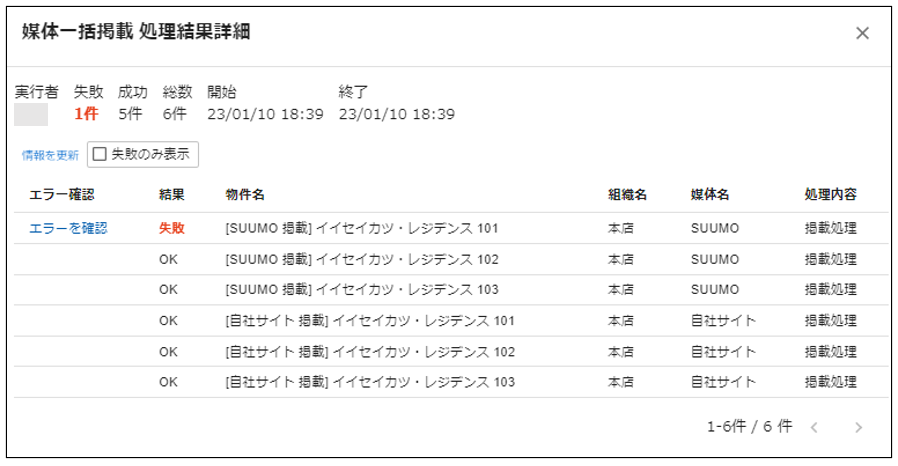 サイト反映時間を過ぎており、かつ掲載処理結果が成功になっているのに物件が掲載されない場合は