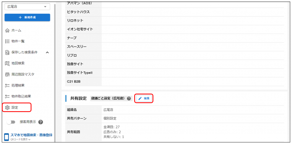物件の共有先店舗は、物件作成後に後から変更することもできますが、