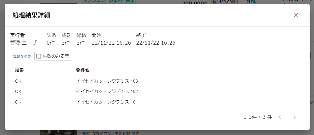 ※一括更新の場合、左メニューの「処理結果一覧」からも確認可能です。