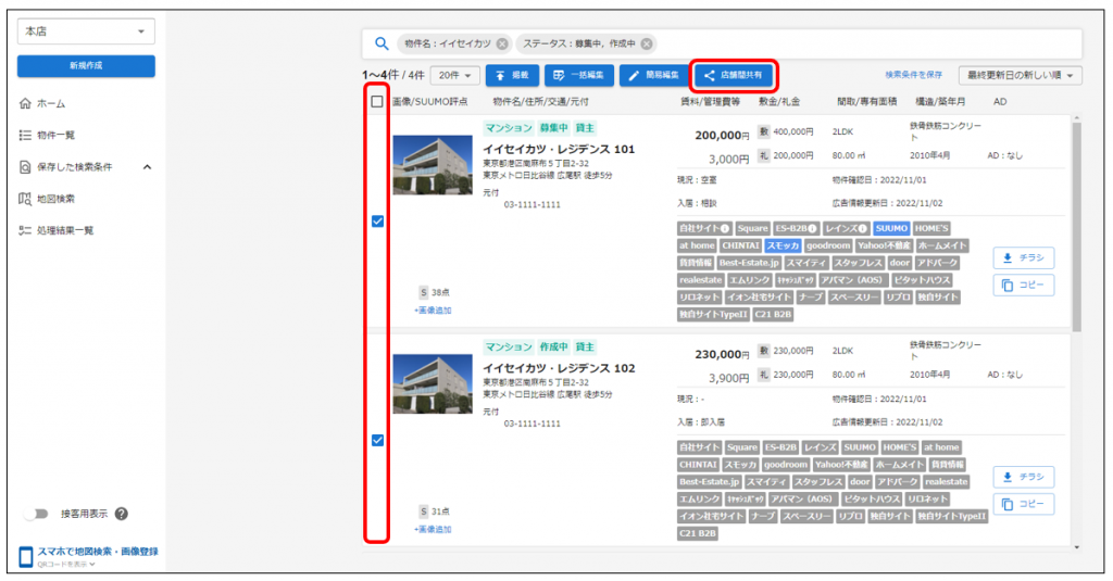 ※共有した物件を編集すると、共有されているすべての店舗に変更内容が反映します。