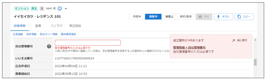 項目を編集すると、その物件が共有されているすべての店舗に変更内容が反映します。