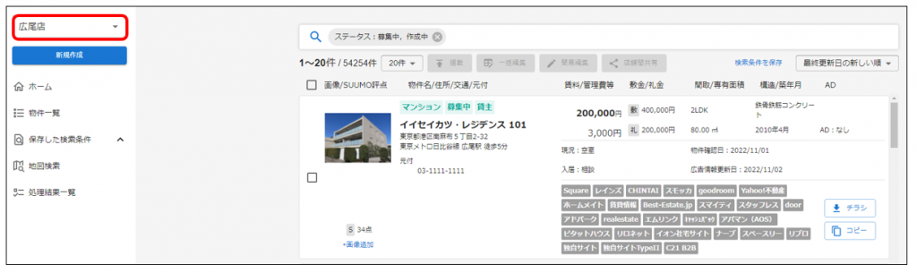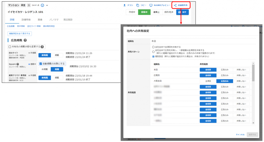 物件の共有先店舗は、物件作成後に後から変更することもできますが、
