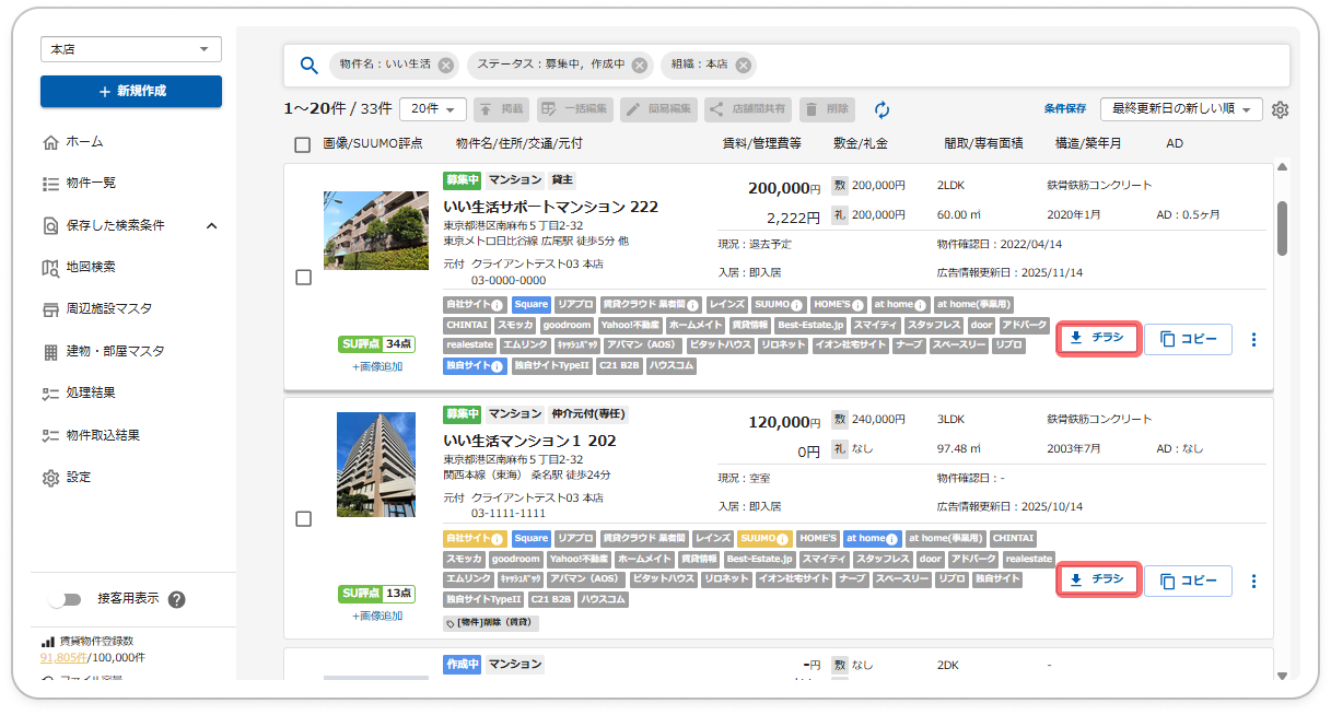 本ページでは、物件一覧や物件詳細から出力できるチラシの出力方法、