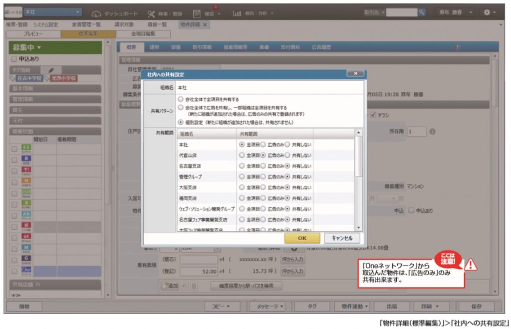 共有状態は『いい生活賃貸クラウドOne』で変更してください。