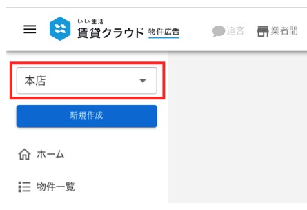 物件一覧では、左上で選択した組織の物件を対象に掲載します。