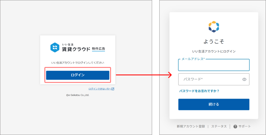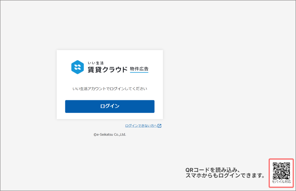 『いい生活賃貸クラウド 物件広告』には『いい生活アカウント』でログインが可能です。