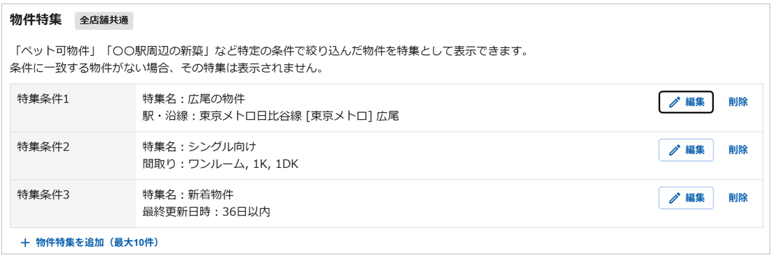 物件特集では特集物件一覧作成・表示することができます。