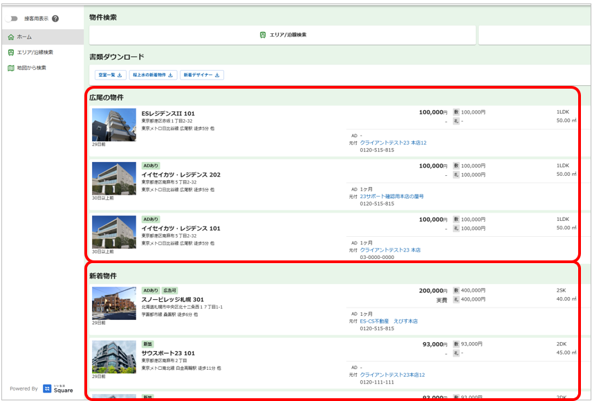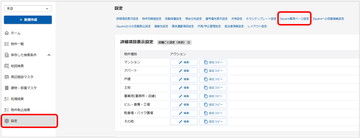 Square専用ページへの物件掲載・招待について