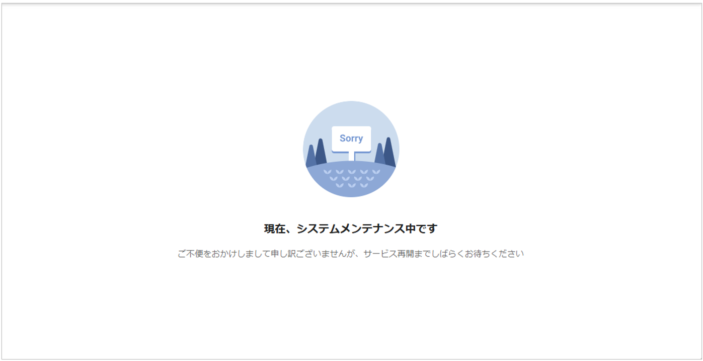 メンテナンス中の旨が表示されます。