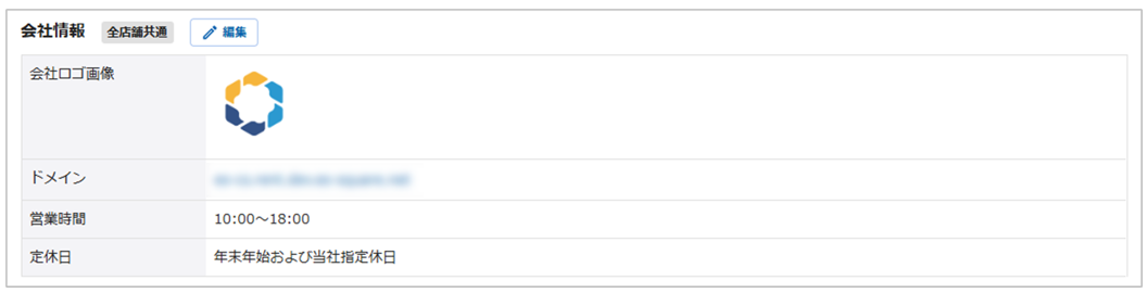 会社情報では、初期設定で設定したドメイン等の確認および営業時間・定休日の修正を行えます