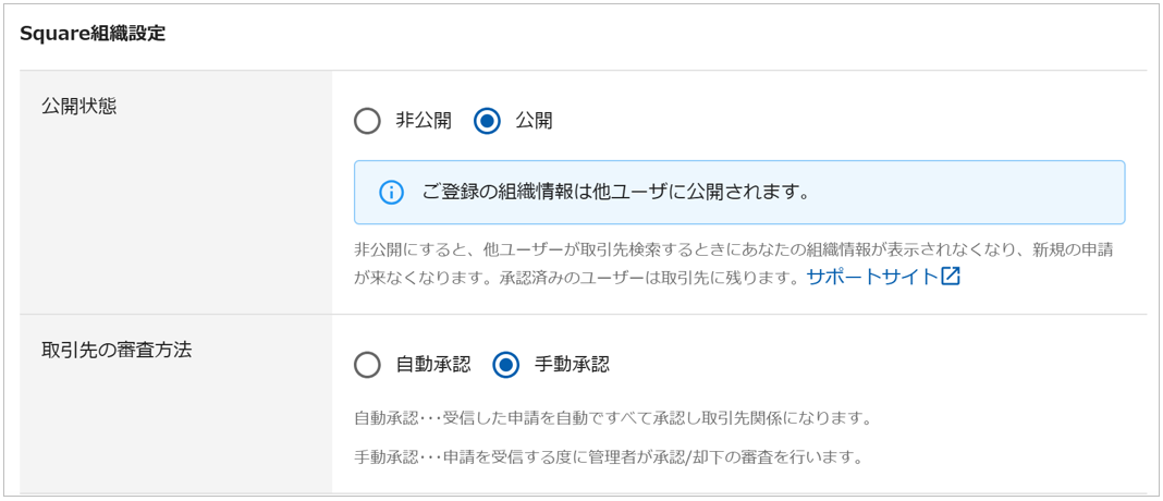 ※手動承認の際の処理はいい生活Squareにて行っていただく必要がございます。
