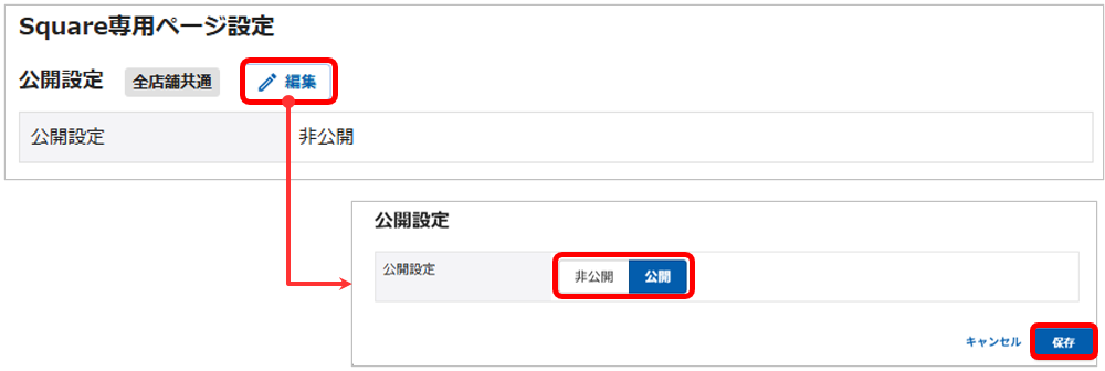 - Square自動公開の設定を行う