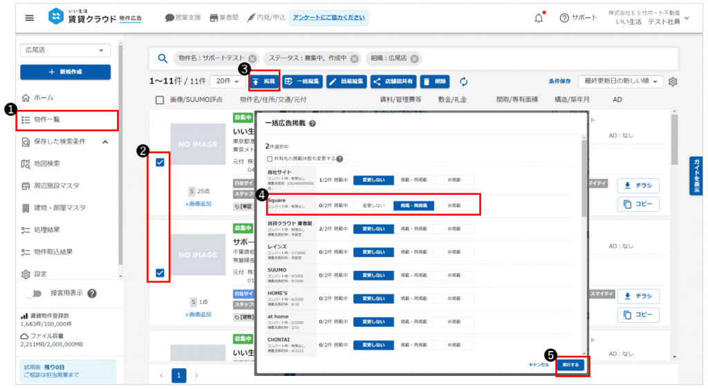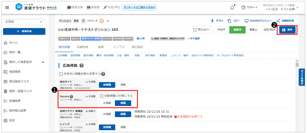 「いい生活Square」へ物件の掲載指示を出すことで