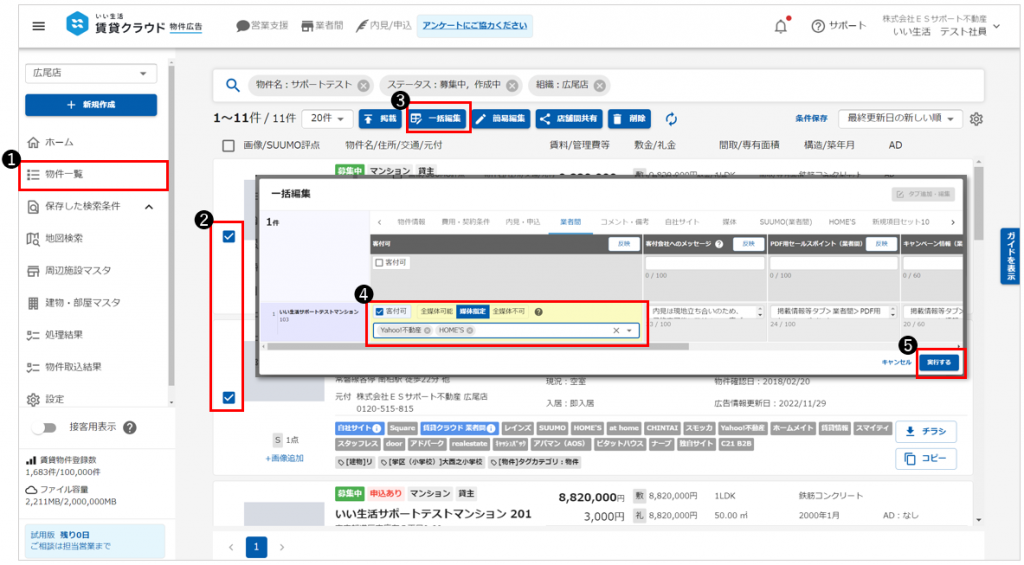 この転載可否設定は物件詳細から、または物件一覧から複数件まとめて設定する方法がございます。