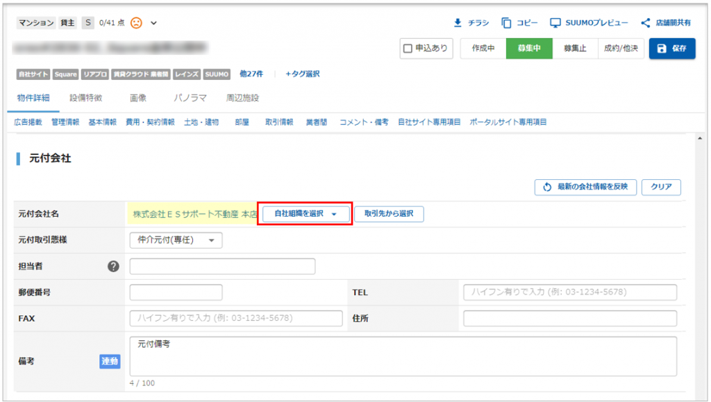 かつ物件に元付会社情報が入力されている必要があります。